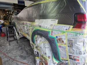 こんにちは(」・ω・)本日は、スズキ ジムニーノマドのラプターライナー施工の準備を行います!施工箇所...